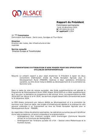 CONVENTIONS D'ATTRIBUTION D'AIDE FEADER POUR DES OPERATIONS CYCLABLES DEPARTEMENTALES