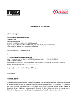 CONVENTION DE PARTENARIAT Bosse en jeux