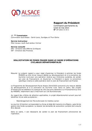 SOLLICITATION DE FONDS FEADER DANS LE CADRE D'OPÉRATIONS CYCLABLES DÉPARTEMENTALES