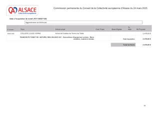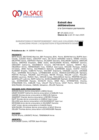 SUBVENTIONS D'INVESTISSEMENT 2025 AUX COLLÈGES PUBLICS ALSACIENS POUR L'ACQUISITION D'ÉQUIPEMENTS DIVERS