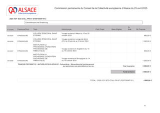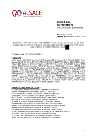 SUBVENTIONS DE FONCTIONNEMENT POUR 2025 AUX ÉCOLES ET AUX COLLÈGES ALSACIENS POUR LES CLASSES DE DÉCOUVERTE, VOYAGES SCOLAIRES, VISITES MÉMORIELLES