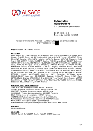FONDS COMMUNAL ALSACE - ATTRIBUTIONS DE SUBVENTIONS D'INVESTISSEMENT