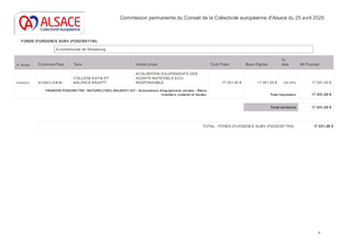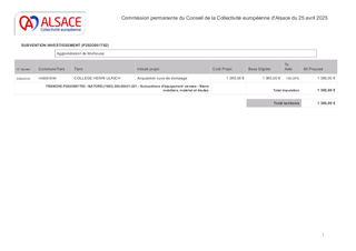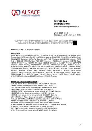 SUBVENTIONS D'INVESTISSEMENT 2025 AUX COLLÈGES PUBLICS ALSACIENS POUR L'ACQUISITION D'ÉQUIPEMENTS DIVERS