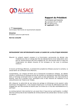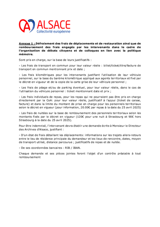 Le présent rapport propose à la Commission permanente de décider des modalités de prise en charge des frais de déplacements et de restauration ainsi que de remboursement des frais engagés par les intervenants dans le cadre de l'organisation de débats citoyens et de colloques en lien avec la politique mémoire.