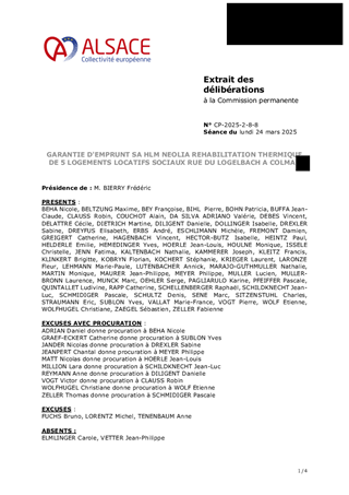 GARANTIE D'EMPRUNT SA HLM NEOLIA REHABILITATION THERMIQUE DE 5 LOGEMENTS LOCATIFS SOCIAUX RUE DU LOGELBACH A COLMAR