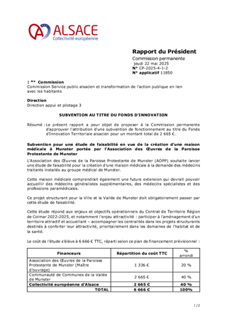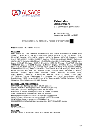 Le présent rapport a pour objet de proposer à la Commission permanente d'approuver l'attribution d'une subvention de fonctionnement au titre du Fonds d'Innovation Territoriale alsacien pour un montant total de 2 665 €.