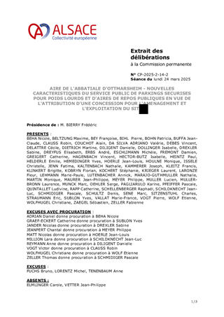 AIRE DE L'ABBATIALE D'OTTMARSHEIM - NOUVELLES CARACTERISTIQUES DU SERVICE PUBLIC DE PARKINGS SECURISES POUR POIDS LOURDS ET D'AIRES DE REPOS PUBLIQUES EN VUE DE L'ATTRIBUTION D'UNE CONCESSION POUR L'AMENAGEMENT ET L'EXPLOITATION DU SITE