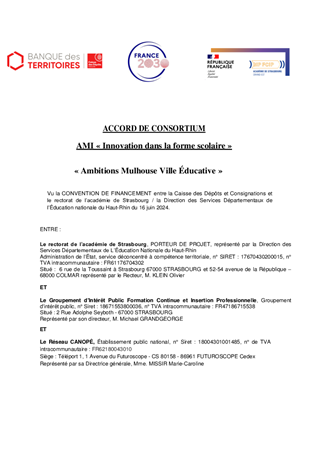 ACCORD DE CONSORTIUM AUTOUR DU PROJET " AMBITIONS MULHOUSE VILLE ÉDUCATIVE "