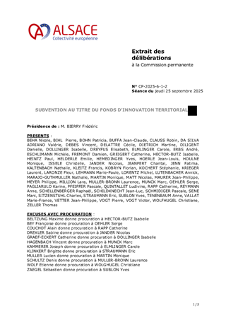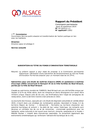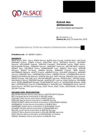 Le présent rapport a pour objet de proposer à la Commission permanente d’approuver l’attribution d’une subvention de fonctionnement au titre du Fonds d’Innovation Territoriale alsacien pour un montant total de 16 274 €.