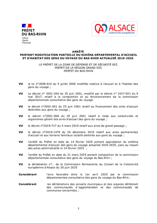 MODIFICATION DU SCHÉMA DÉPARTEMENTAL D'ACCUEIL ET D'HABITAT DES GENS DU VOYAGE DU BAS-RHIN ACTUALISÉ 2019-2025