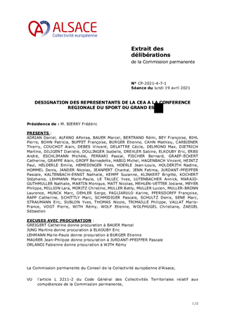 DESIGNATION DES REPRESENTANTS DE LA CEA A LA CONFERENCE REGIONALE DU SPORT DU GRAND EST