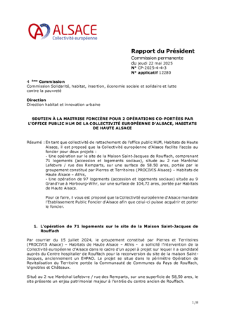 SOUTIEN À LA MAITRISE FONCIÈRE POUR 2 OPÉRATIONS CO-PORTÉES PAR L'OFFICE PUBLIC HLM DE LA COLLECTIVITÉ EUROPÉENNE D'ALSACE, HABITATS DE HAUTE ALSACE
