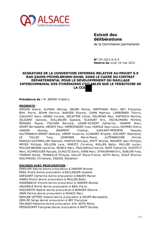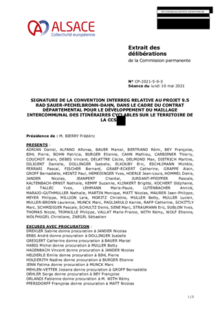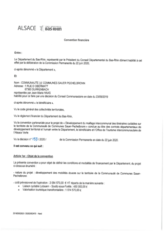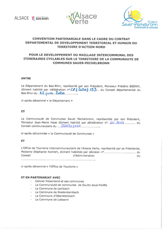 SIGNATURE DE LA CONVENTION INTERREG RELATIVE AU PROJET 9.5 RAD SAUER-PECHELBRONN-DAHN, DANS LE CADRE DU CONTRAT DÉPARTEMENTAL POUR LE DÉVELOPPEMENT DU MAILLAGE INTERCOMMUNAL DES ITINÉRAIRES CYCLABLES SUR LE TERRITOIRE DE LA CCSP
