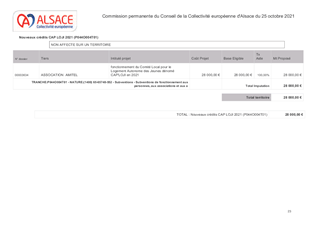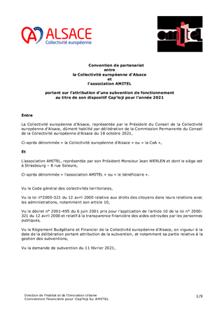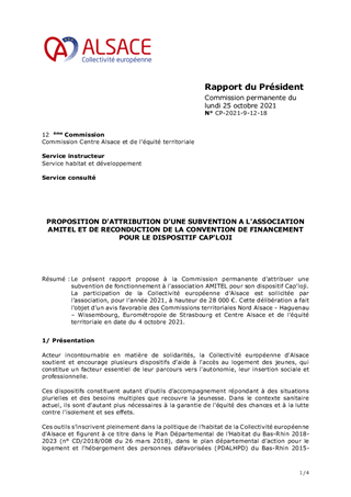 Le présent rapport propose à la Commission permanente d'attribuer une subvention de fonctionnement à l'association AMITEL pour son dispositif Cap'loji. La participation de la Collectivité européenne d’Alsace est sollicitée par l’association, pour l’année 2021, à hauteur de 28 000 €. Cette délibération a fait l'objet d'un avis favorable des Commissions territoriales Nord Alsace - Haguenau – Wissembourg, Eurométropole de Strasbourg et Centre Alsace et de l'équité territoriale en date du 4 octobre 2021.