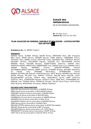 PLAN ALSACIEN DE REBOND, DURABLE ET SOLIDAIRE - ACTION ENTRÉE DES ARTISTES