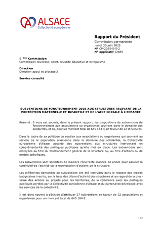 SUBVENTIONS DE FONCTIONNEMENT 2025 AUX STRUCTURES RELEVANT DE LA PROTECTION MATERNELLE ET INFANTILE ET DE L'AIDE SOCIALE À L'ENFANCE