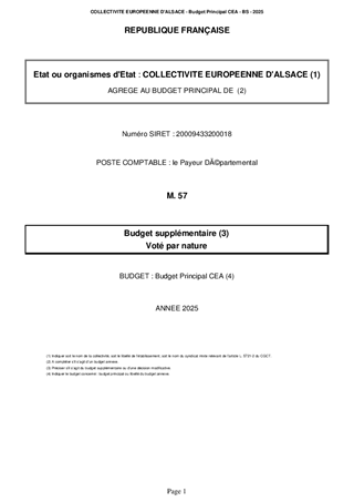 DÉCISION MODIFICATIVE N 1 DU BUDGET PRIMITIF 2025 DE LA COLLECTIVITÉ EUROPÉENNE D'ALSACE