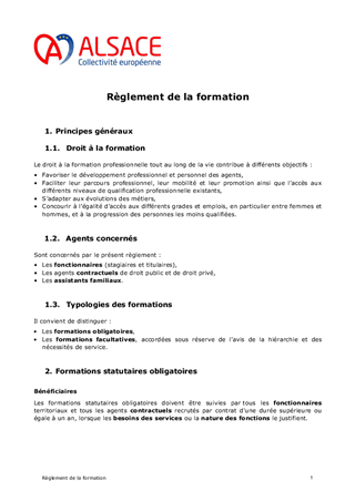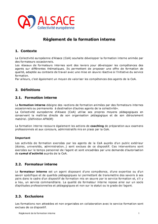 Les règlements de la formation et de la formation interne ont pour ambition d’accompagner les agents de la CeA dans le développement de leurs compétences afin d’assurer un service public renouvelé au plus proche des alsaciens en favorisant l’accès aux formations et en développant des formations ajustées au contexte de travail.