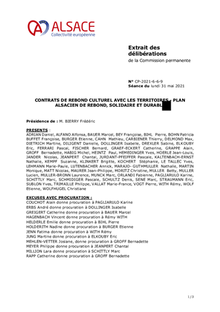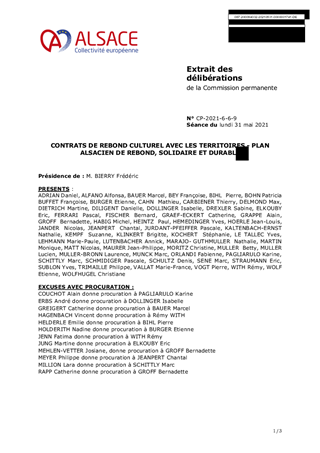 CONTRATS DE REBOND CULTUREL AVEC LES TERRITOIRES - PLAN ALSACIEN DE REBOND, SOLIDAIRE ET DURABLE