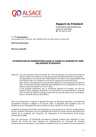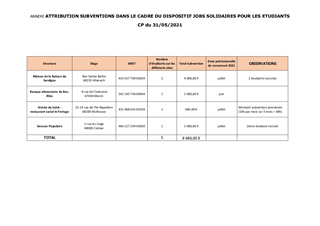 ATTRIBUTION DE SUBVENTIONS DANS LE CADRE DU DISPOSITIF JOBS SOLIDAIRES ETUDIANTS