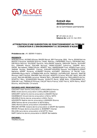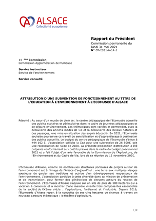 ATTRIBUTION D'UNE SUBVENTION DE FONCTIONNEMENT AU TITRE DE L'EDUCATION À L'ENVIRONNEMENT À L'ECOMUSEE D'ALSACE