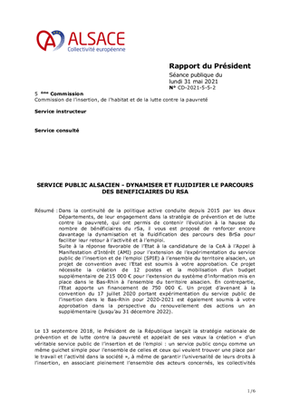 SERVICE PUBLIC ALSACIEN - DYNAMISER ET FLUIDIFIER LE PARCOURS DES BENEFICIAIRES DU RSA