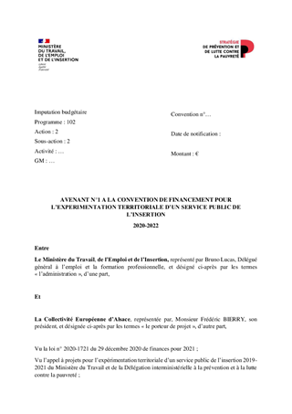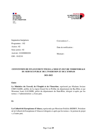 Dans la continuité de la politique active conduite depuis 2015 par les deux Départements, de leur engagement dans la stratégie de prévention et de lutte contre la pauvreté, qui ont permis de contenir l’évolution à la hausse du nombre de bénéficiaires du rSa, il vous est proposé de renforcer encore davantage la dynamisation et la fluidification des parcours des BrSa pour faciliter leur retour à l’activité et à l’emploi. Suite à la réponse favorable de l’Etat à la candidature de la CeA à l’Appel à Manifestation d’Intérêt (AMI) pour l’extension de l’expérimentation du service public de l’insertion et de l’emploi (SPIE) à l’ensemble du territoire alsacien, un projet de convention avec l’Etat est soumis à votre approbation. Ce projet nécessite la création de 12 postes et la mobilisation d’un budget supplémentaire de 215 000 € pour l’extension du système d’information mis en place dans le Bas-Rhin à l’ensemble du territoire alsacien. En contrepartie, l’Etat apporte un financement de 750 000 €. Un projet d’avenant à la convention du 17 juillet 2020 portant expérimentation du service public de l’insertion dans le Bas-Rhin pour 2020-2021 est également soumis à votre approbation dans la perspective du renouvellement des actions un an supplémentaire (jusqu’au 31 décembre 2022).