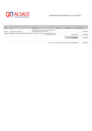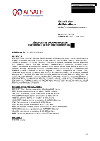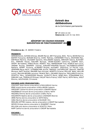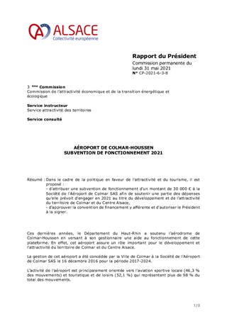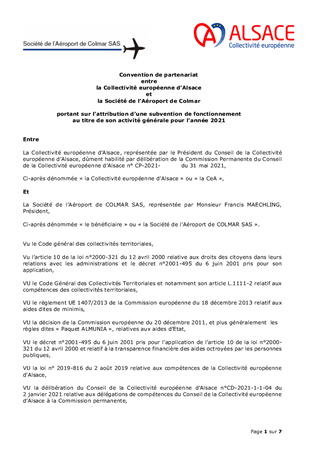 AÉROPORT DE COLMAR-HOUSSEN SUBVENTION DE FONCTIONNEMENT 2021