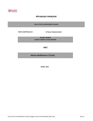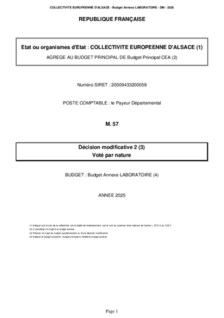 DÉCISION MODIFICATIVE N 2 DU BUDGET PRIMITIF 2025 DE LA COLLECTIVITÉ EUROPÉENNE D'ALSACE