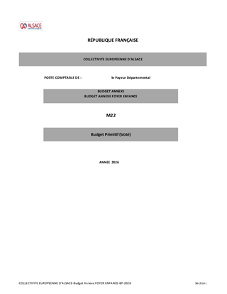 BUDGET PRIMITIF 2026 DE LA COLLECTIVITÉ EUROPÉENNE D'ALSACE