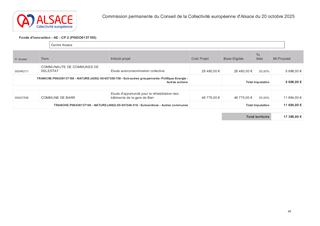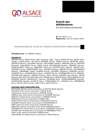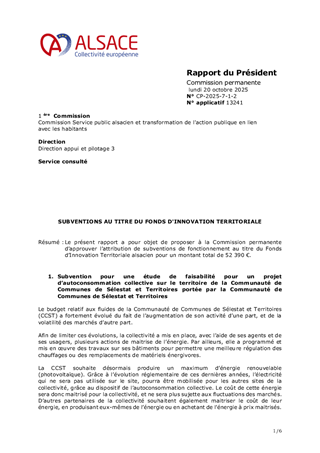 Le présent rapport a pour objet de proposer à la Commission permanente d’approuver l’attribution de subventions de fonctionnement au titre du Fonds d’Innovation Territoriale alsacien pour un montant total de 52 390 €.