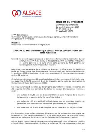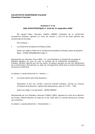 AVENANT AU BAIL EMPHYTÉOTIQUE CONCLU AVEC LE CONSERVATOIRE DES SITES ALSACIENS