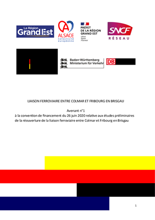 LIAISON FERROVIAIRE ENTRE COLMAR ET FRIBOURG EN BRISGAU - AVENANT N'1 À LA CONVENTION DE FINANCEMENT DU 26 JUIN 2020 RELATIVE AUX ÉTUDES PRÉLIMINAIRES