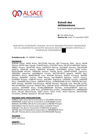 GARANTIE D'EMPRUNT DOMIAL SA HLM REHABILITATION THERMIQUE DE 23 LOGEMENTS LOCATIFS SOCIAUX RUE DE L'ANCIEN HÔPITAL A MASEVAUX-NIEDERBRUCK