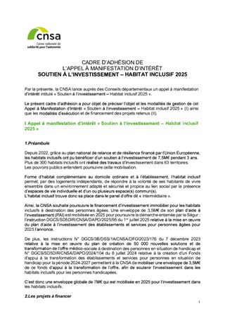 ADHÉSION À L'APPEL À MANIFESTATION D'INTÉRÊT AMI "SOUTIEN À L'INVESTISSEMENT - HABITAT INCLUSIF " DE LA CNSA