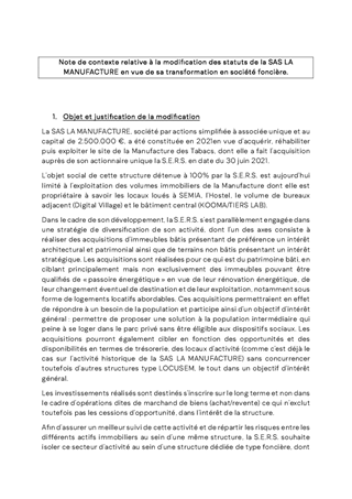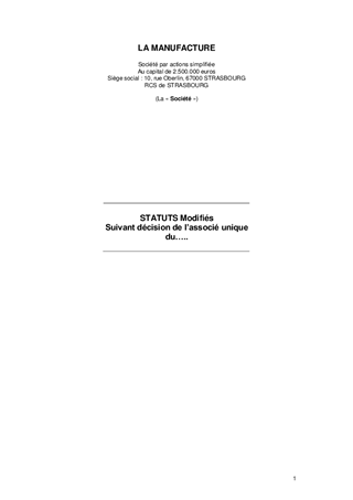 MODIFICATION DE L'OBJET SOCIAL DE LA SAS LA MANUFACTURE