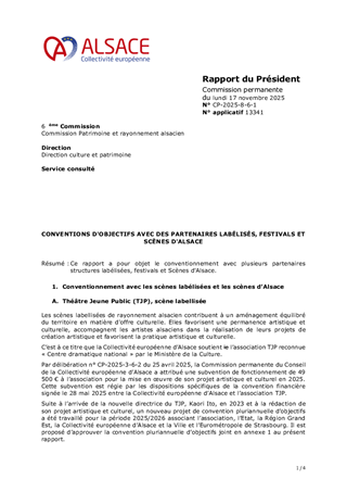 Ce rapport a pour objet le conventionnement avec plusieurs partenaires structures labélisées, festivals et Scènes d'Alsace.