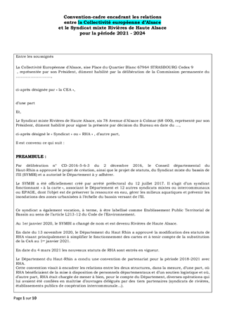 RENOUVELLEMENT DE LA CONVENTION ENTRE LA COLLECTIVITÉ EUROPÉENNE D'ALSACE ET LE SYNDICAT MIXTE RIVIÈRES DE HAUTE ALSACE
