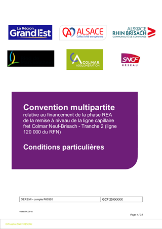 CONVENTION MULTIPARTITE RELATIVE AU FINANCEMENT DE LA PHASE REA DE LA REMISE À NIVEAU DE LA LIGNE CAPILLAIRE FRET COLMAR NEUF-BRISACH - TRANCHE 2 LIGNE 120 000 DU RFN
