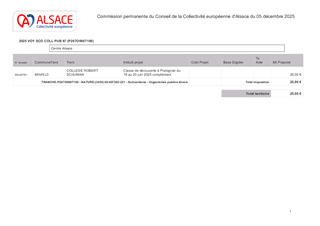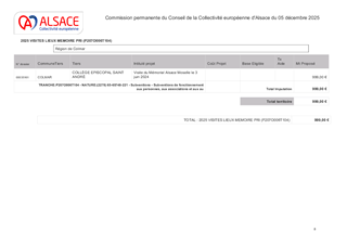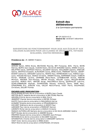 SUBVENTIONS DE FONCTIONNEMENT POUR 2025 AUX ÉCOLES ET AUX COLLÈGES ALSACIENS POUR LES CLASSES DE DÉCOUVERTE, VOYAGES SCOLAIRES, VISITES MÉMORIELLES