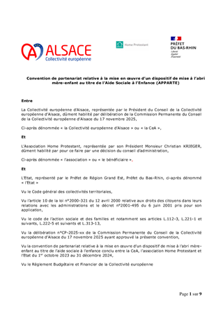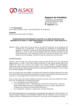 Dans le cadre de la mise en œuvre du plan de prévention et de protection de l’enfance de la Collectivité, il est proposé de reconduire le financement du dispositif « l’Appart’é » porté par le Home Protestant à hauteur de 204 848 € afin d’assurer la mise à l’abri et l’accompagnement des femmes enceintes ou des mère isolées avec leurs enfants de moins de 3 ans qui ont besoin d’un soutien matériel et psychologique, notamment parce qu’elles sont sans domicile.