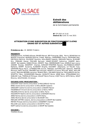 ATTRIBUTION D'UNE SUBVENTION DE FONCTIONNEMENT À ATMO GRAND EST ET AUTRES SUBVENTIONS