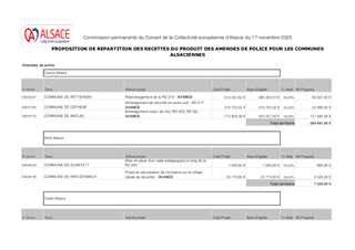 PROPOSITION DE REPARTITION DES RECETTES DU PRODUIT DES AMENDES DE POLICE POUR LES COMMUNES ALSACIENNES