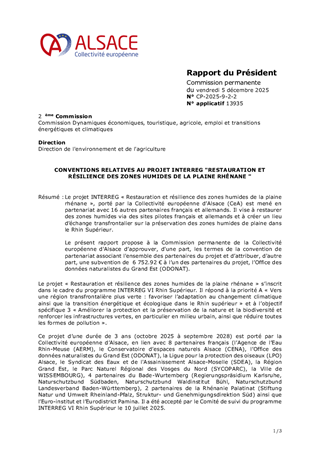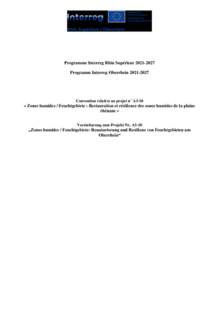 CONVENTIONS RELATIVES AU PROJET INTERREG "RESTAURATION ET RÉSILIENCE DES ZONES HUMIDES DE LA PLAINE RHÉNANE "