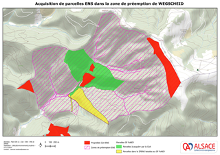 Dans le cadre de la compétence Espaces Naturels Sensibles, le présent rapport a pour objet de proposer à la Commission permanente, l’acquisition de : - 9 parcelles à WISSEMBOURG/ALTENSTADT, d'une superficie de 102,40 ares, au prix de 7 168,00 € ; - 16 parcelles à WEGSCHEID, d'une superficie de 5 277,28 ares, au prix de 474 956,00 €.