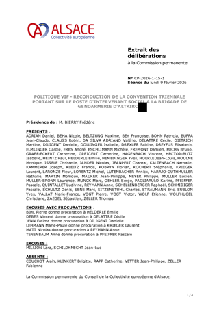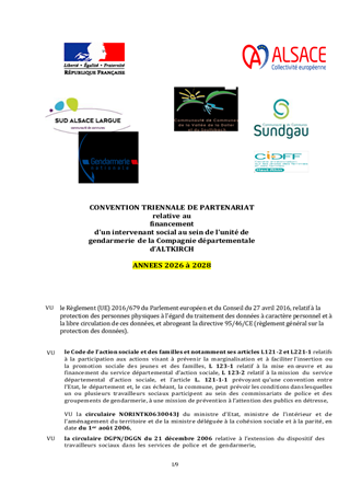 POLITIQUE VIF - RECONDUCTION DE LA CONVENTION TRIENNALE PORTANT SUR LE POSTE D'INTERVENANT SOCIAL A LA BRIGADE DE GENDARMERIE D'ALTKIRCH