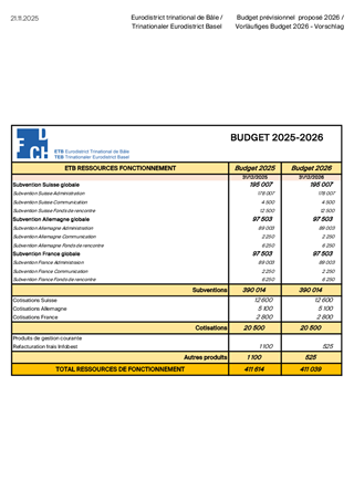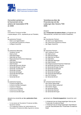 SOUTIEN AUX INSTANCES DE COOPÉRATION TRANSFRONTALIÈRE - INFOBEST PALMRAIN ET EURODISTRICT TRINATIONAL DE BALE - CONVENTIONS DE FINANCEMENT 2026