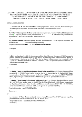 AVENANT 2 A LA CONVENTION D'ORGANISATION DES MESURES FONCIERES DU PLAN DE PREVENTION DES RISQUES TECHNOLOGIQUES DES SOCIETES PPC ET CRISTAL FRANCE A VIEUX-THANN