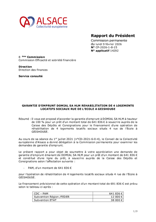 GARANTIE D'EMPRUNT DOMIAL SA HLM REHABILITATION DE 4 LOGEMENTS LOCATIFS SOCIAUX RUE DE L'ECOLE A GEISHOUSE