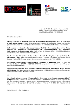 AVENANT N 1 À LA CONVENTION DE PARTENARIAT RELATIVE À LA LUTTE CONTRE LA TUBERCULOSE - MAISON D'ARRÊT DE STRASBOURG